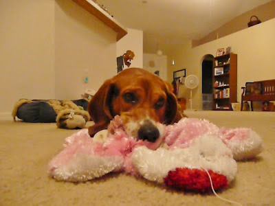 Once Stella warmed up to us after her Momma left, she settled down in Bailey's bed!
